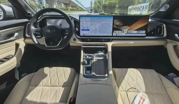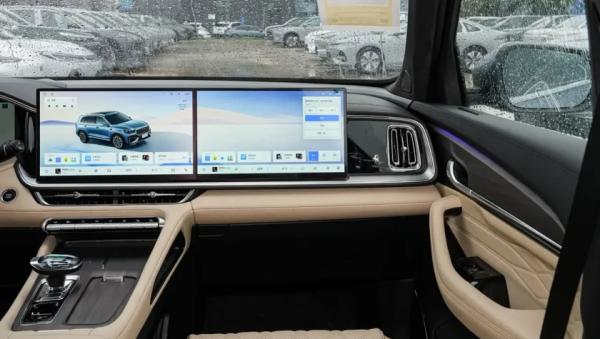Главные изменения рестайлинга произошли в салоне: на передней панели теперь установлен крупный сенсорный планшет разделенный на две части, центральную и со стороны переднего пассажира (по 14,6-дюймов каждая). Причем если ранее более компактные экраны были встроены в торпедо, то теперь они смонтированы поверх нее, примерно, как у моделей марки Lixiang. Но перед водителем прежнего размера экран виртуальных приборов (12,3-дюйма) спрятанный под козырьком.