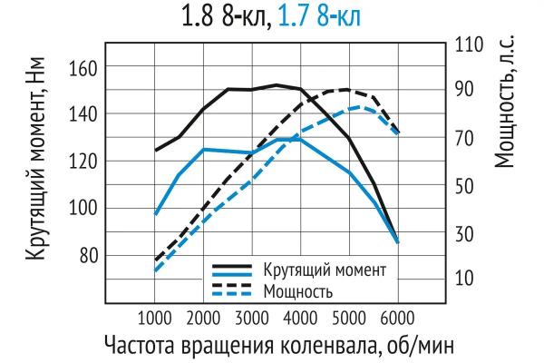 Рабочий объём двигателя составляет 1,8 литра, максимальная мощность — 90 л.с., а пиковый момент достигает 153 Нм. Относительно прежнего силового агрегата прирост составил 7 л.с и 23 Нм. Главный акцент сделан на улучшении тяги: мотор выдаёт 120 Нм уже на 1000 об/мин, а в диапазоне 2000–4000 об/мин работает значительно эластичнее, что делает его поведение более «дизельным».