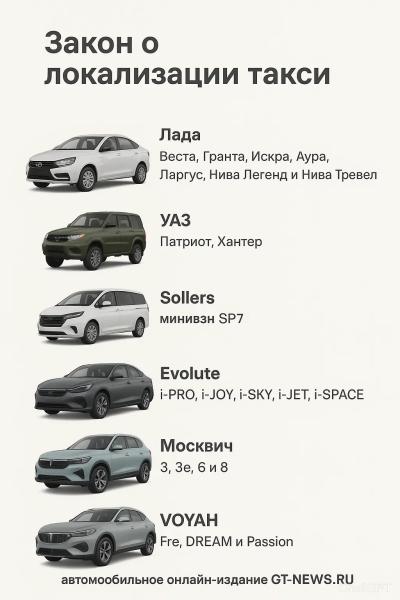 Закон о локализации такси Госдума приняла весной 2025-го, а сейчас Минпромторг опубликовал список моделей разрешенных к использованию после 1 марта 2026 года.